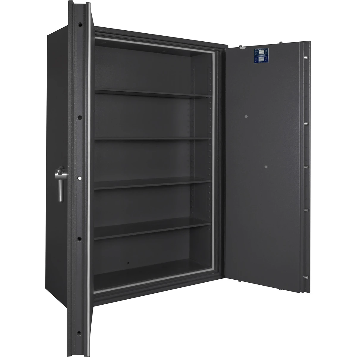 - На дверь установлен американский электронный замок «ComboGard Pro 39 E», обладающий высоким классом секретности. Замок защищён от подбора кода и допускает до миллиона кодовых комбинаций.